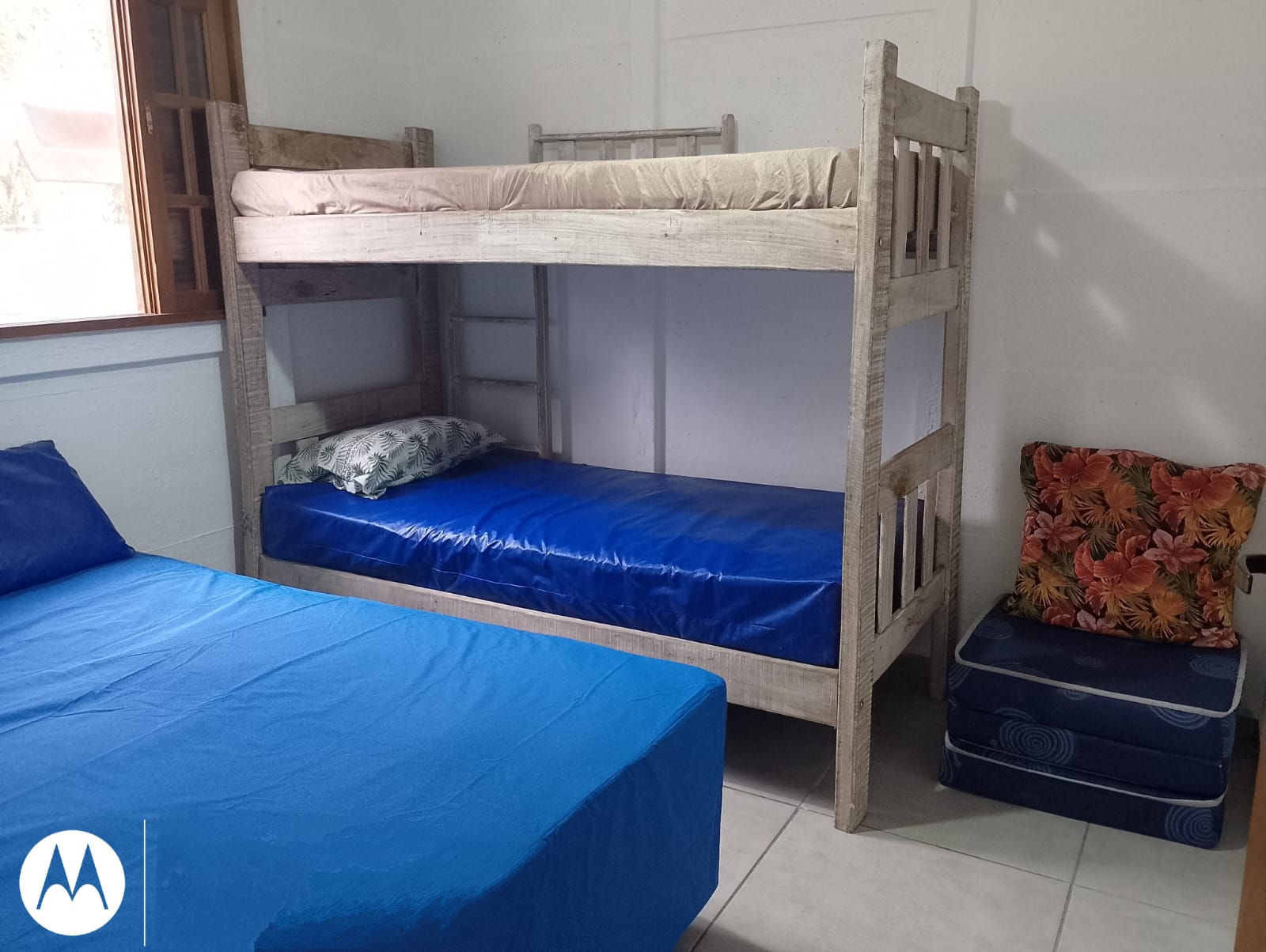 Quarto, cozinha e banheiro. (1 cama casal, 1 beliche e 1 colchão solteiro reserva)