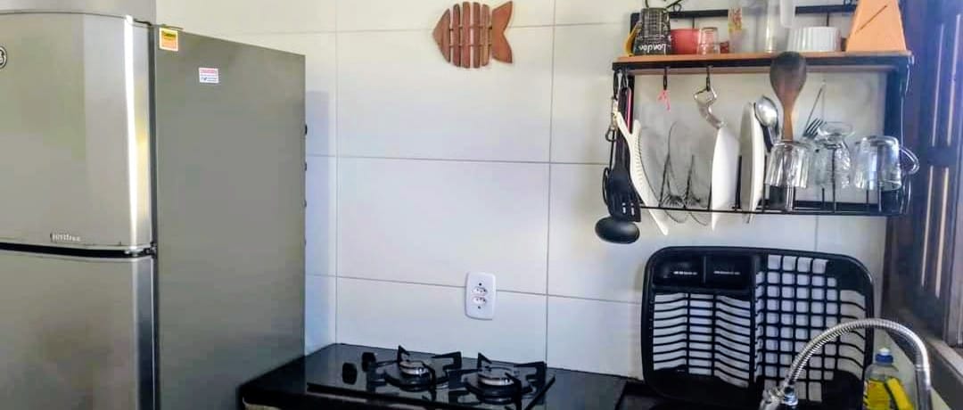 Quarto, cozinha e banheiro. (1 cama casal, 1 beliche e 1 colchão solteiro reserva)